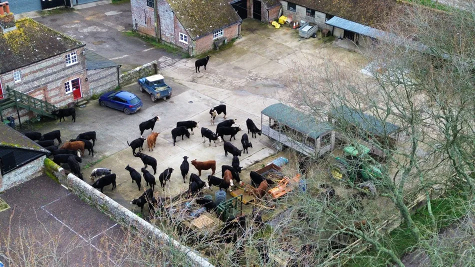 And finally, please do enjoy this image of cattle loitering where they should not. They had to be corralled in the ‘tidy’ yard while their mates were carefully cajoled into passing the scary tractor shed: they were supposed to meekly walk straight past and up the track to the next grazing field …