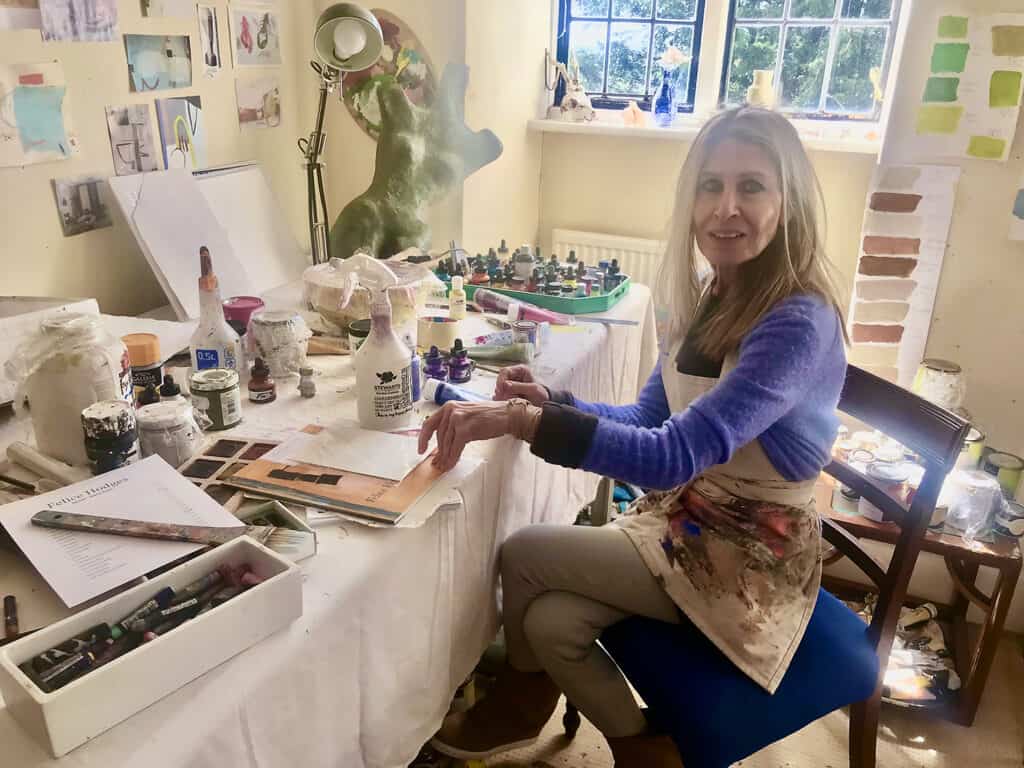 Podi Lawrence in her studio in Fortuneswell. Podi has been a professional portrait and