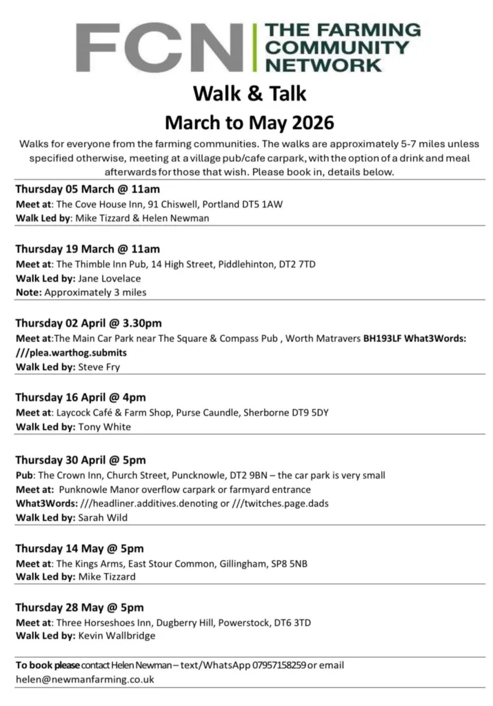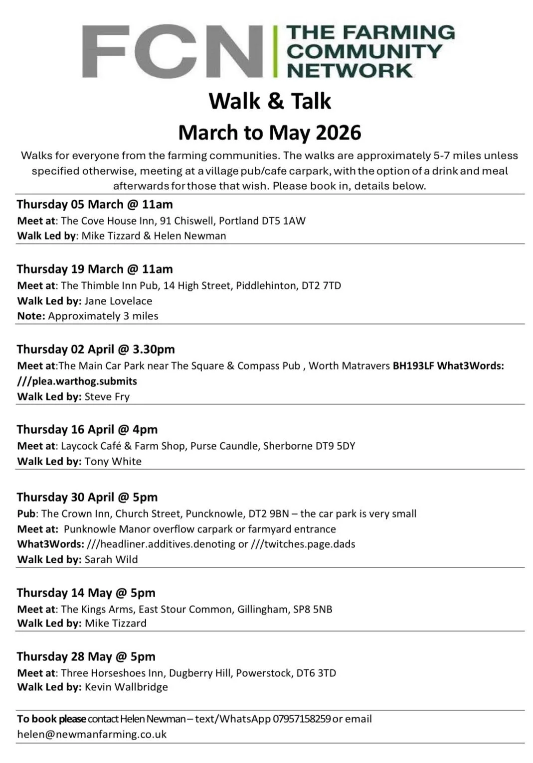 This spring we are also holding more of our popular Walk & Talk events around the county – details in the ad. Anyone within the rural community is very welcome to attend. Come and join us for a five to seven mile walk. We always meet at a village pub or café car park, so there’s the option of a drink and a meal afterwards. To book please contact Helen Newman by text or WhatsApp on 07957158259 or [email protected]