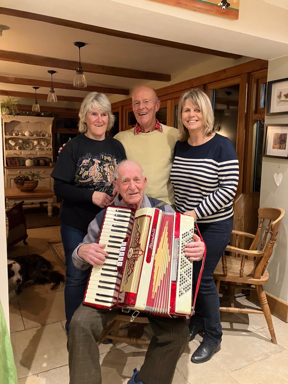 He put out a ‘wanted’ request on Dorset Freecycle, on the off-chance that there might somewhere be an unwanted accordion gathering dust. He was immediately contacted by Tracey Inglis-McBeath from Kings Stag – her late father had a dance band, and his accordion featured in their repertoire. Since his passing the delightful Italian Mirandelli accordion has remained in its travelling case.