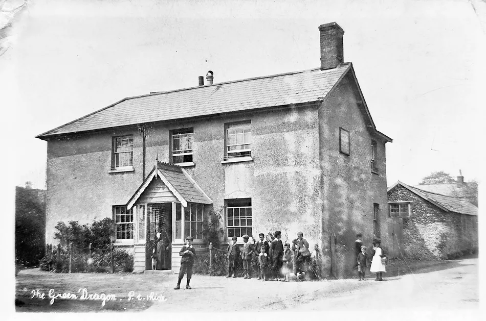 This month Barry Cuff has chosen a 1906 postcard of the Green Dragon in Piddletrenthide. To accompany it we found a news story from an inquest held there just six years later. The following story was reported in the Bridport News on Friday 8th November, 1912.