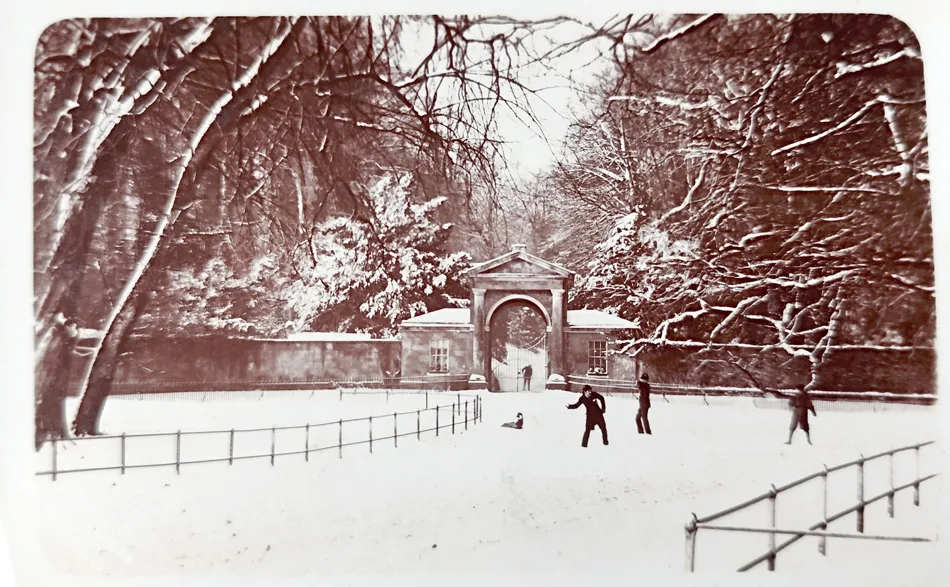 This postcard, with its snowball fight, was taken just 12 years after the new house was completed, when the family were enjoying the high point of the estate’s wealth – a flurry of construction across the estate, included the distinctive red-brick cottages that remain today.