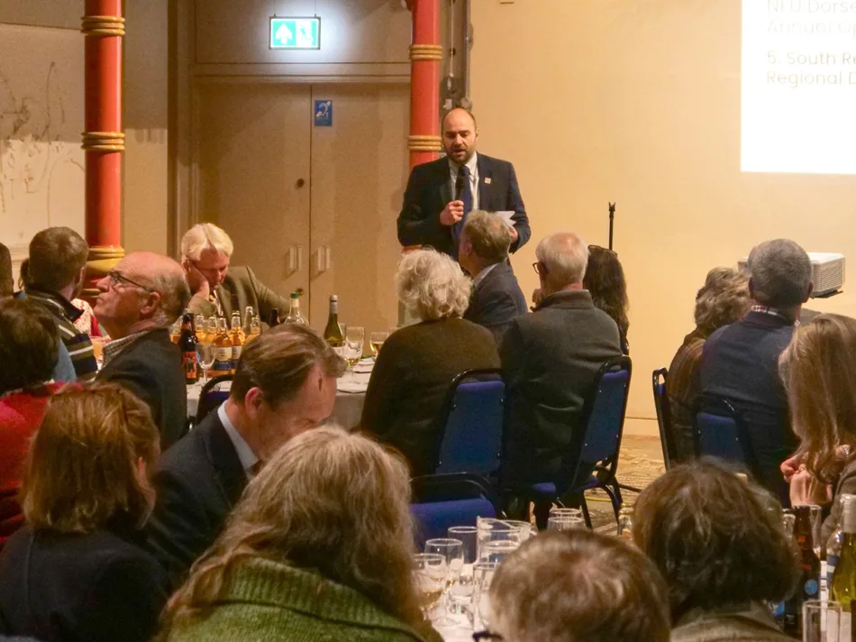 A packed hall was the scene for Dorset NFU’s County Annual Open Meeting at the end of November. County chair Tim Gelfs wanted to put a different angle on the meeting this year. Conscious that farming has just been through a difficult 12 months – both politically and with a long summer drought – he was keen to bring members together. With the help of county advisor Dirk Russell, and Dorset’s six group secretaries, it was decided to mix business with pleasure while celebrating Dorset’s fantastic produce.