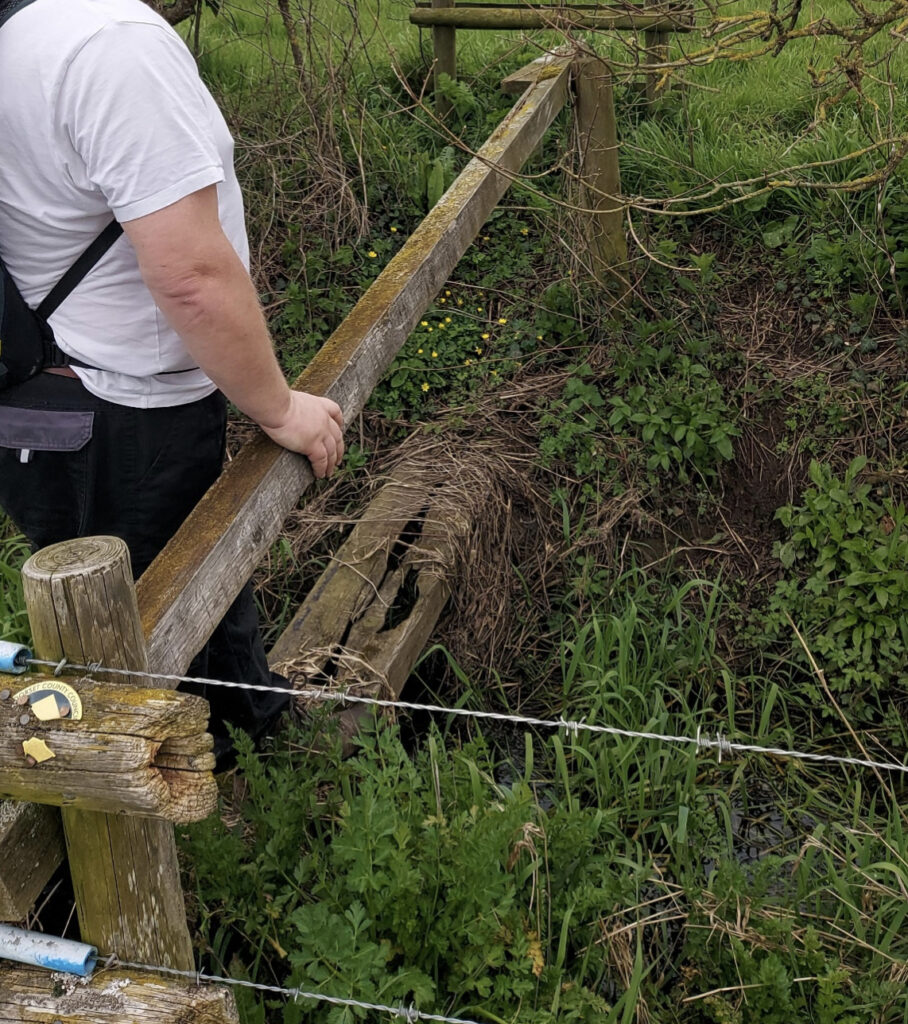 The route is easy to follow and well signposted. Stiles and bridges are all well kept (except one small planked ditch bridge as you approach the back of Mullins Farm. Tread carefully on this one – one side is fine, the other very much not so! See image above).