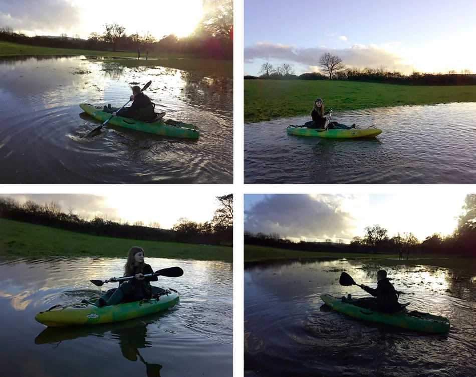 A group of young people recently took to the water for a unique outdoor session, kayaking through a field temporarily transformed by flooding. It was a chance not just for fun and laughter, but also for reflection, says Future Roots founder and manager Julie Plumley: ‘At Future Roots we make use of every opportunity – and the rain brought some different fun, using the fields to float and reflect.’