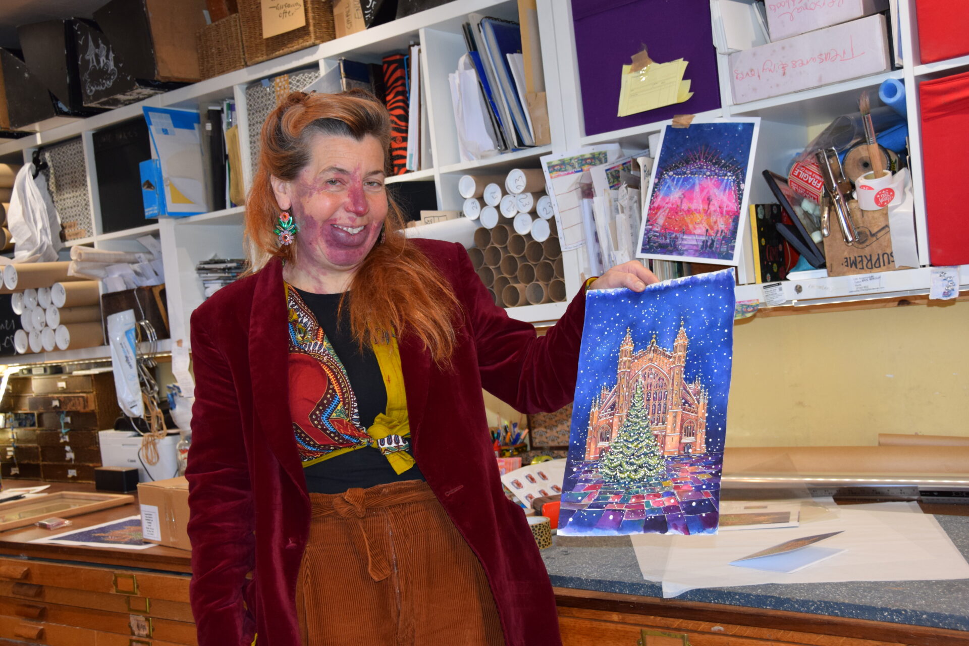 Kate has a stall at the Bath Christmas Market, which runs daily to 10th December. She is in the Abbey Yard – appropriate as her Christmas card this year depicts the beautiful