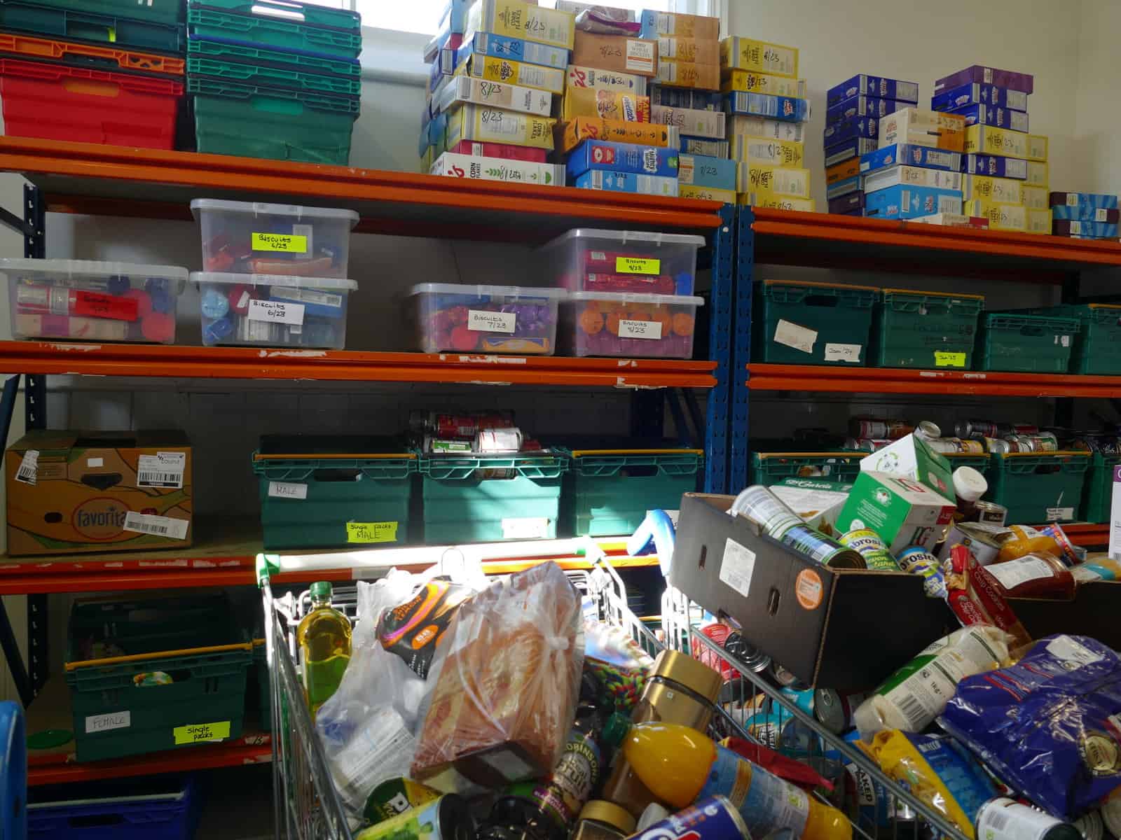 The church building is a bit of a rabbit warren, with rooms leading to more space. There’s a welcome area where people can get a cup of tea and talk to a volunteer. And then there are rooms stacked with crates of tinned food, shopping trolleys piled high, and an open space. But there’s also a profound warmth, welcoming people to its heart.