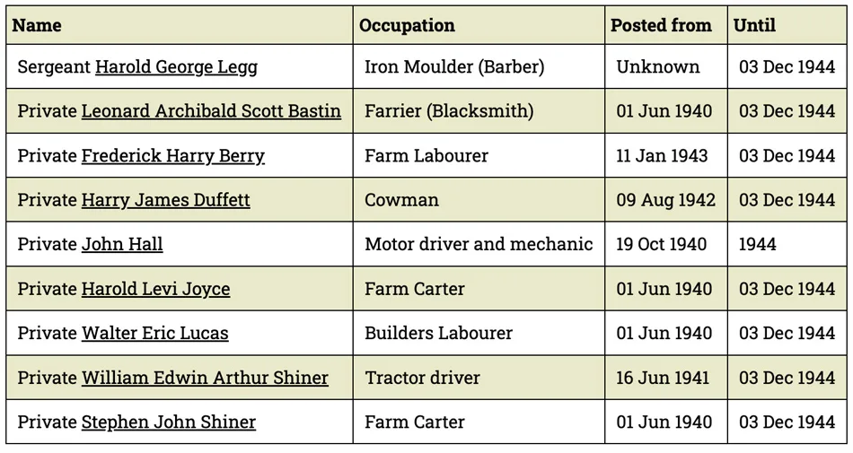 Dorset had six groups: East Dorset, Wareham, Dorchester, Weymouth, Blandford and Bridport. The North Dorset group was based at Chestnut House in East Street, Blandford, reporting to Major Robert Wilson. It had eight patrols, each of four to eight men. They operated autonomously in self-contained cells using hidden bunkers in Child Okeford, Hinton St Mary, Leweston, Motcombe, Pimperne, Plush, Stourton Caundle and Woodyates. Many Scallywags were recruited from the Home Guard, and most were in reserved occupations essential for the war effort. Gamekeepers (and poachers!) were especially valued for their local knowledge.