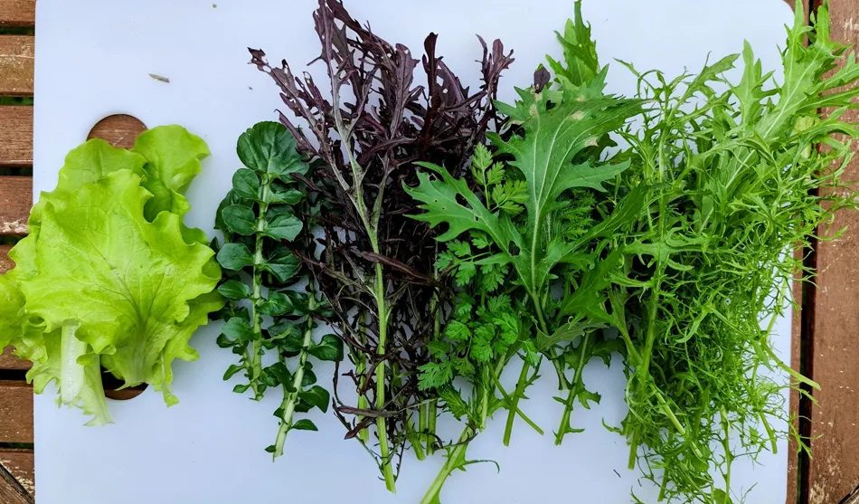 Salad and stir-fry – We have a good selection of plants to choose from as required: Chinese cabbage, radicchio, mizuna, winter cress, red and green frilly leaf mustards plus red moon, blue moon and daikon radishes.