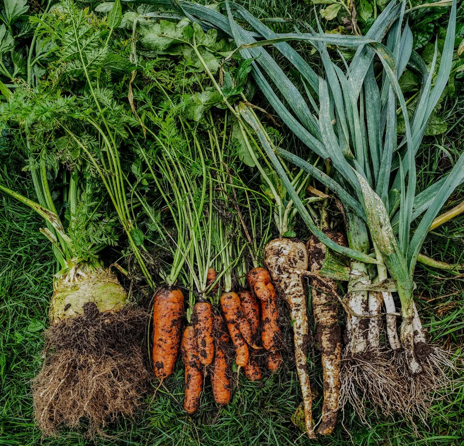 In store and the freezer – Potatoes, onions, sweetcorn, French beans, garlic and peas.
