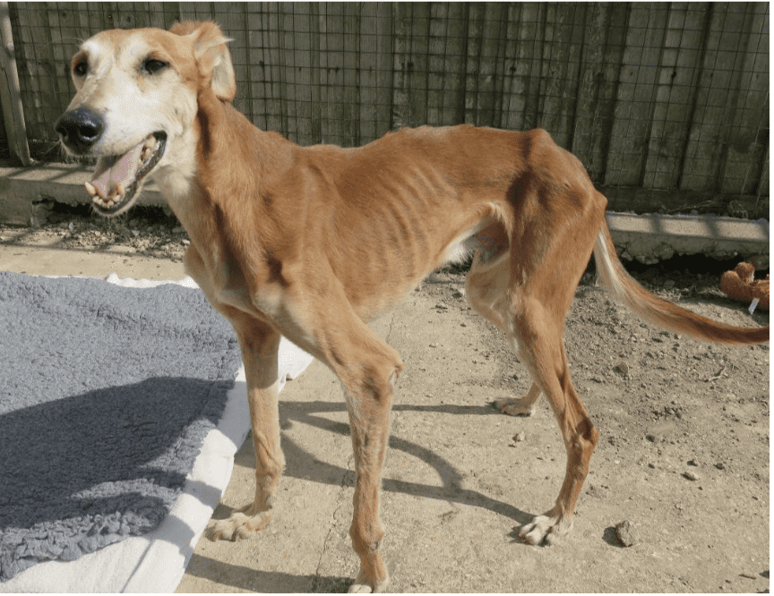 Herman is a sweet boy who has suffered far more than any dog should. He is an 11 year old Lurcher and he came into our Lincoln Farm Centre this year as an unclaimed stray. The staff could see that he has had a hard life. He was emaciated when he arrived, and struggled to walk as he was so drained of energy. Herman was in desperate need of some love and care. Even though he was in such a poor state, he would always stagger to his feet to greet the staff with a very waggy tail – the team felt he knew he was finally safe. The vet suspected that two of his legs were previously broken and had just been left to heal, which meant that they have not healed correctly and he is a little wobbly when he walks.