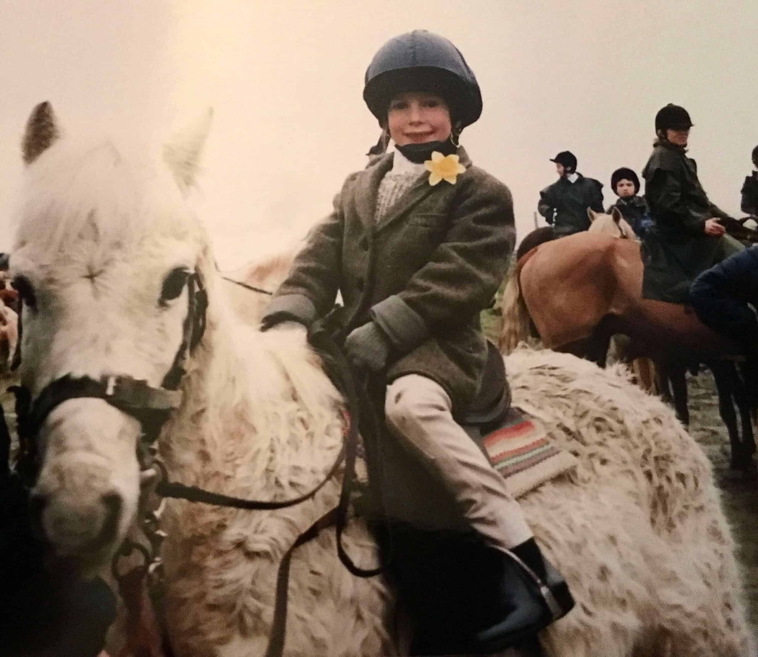 Jemima with her first pony, a ‘very fluffy 12.2 Welsh’ called Dinky