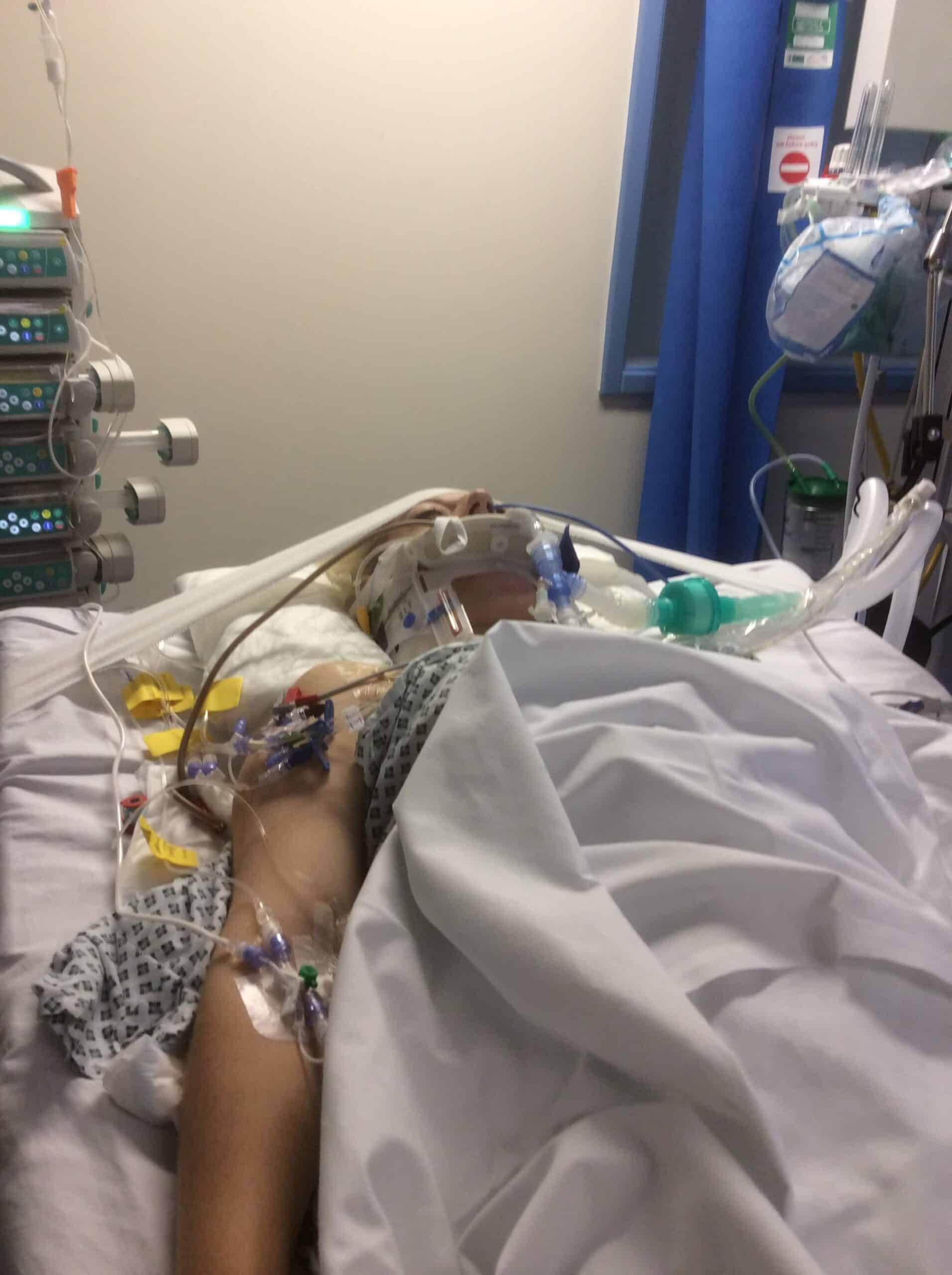 Jemima in the hospital, not long after the accident