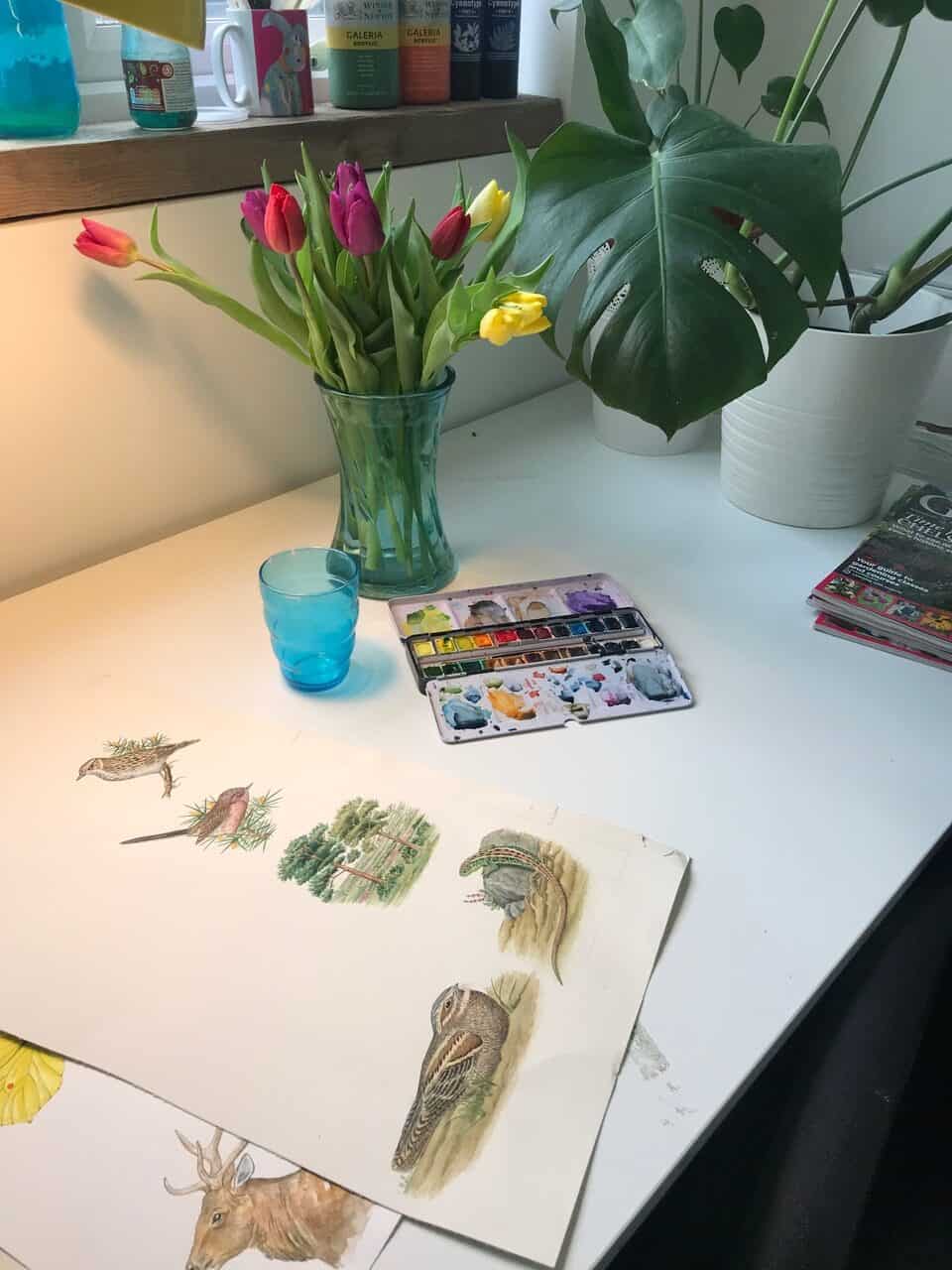 On Maria Burn’s desk; some of her recent Natural History watercolour studies