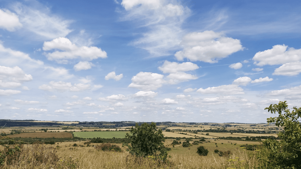 The view from the top of the first climb up Blagdon Hill – you can just make out the car park half way to the horizon.