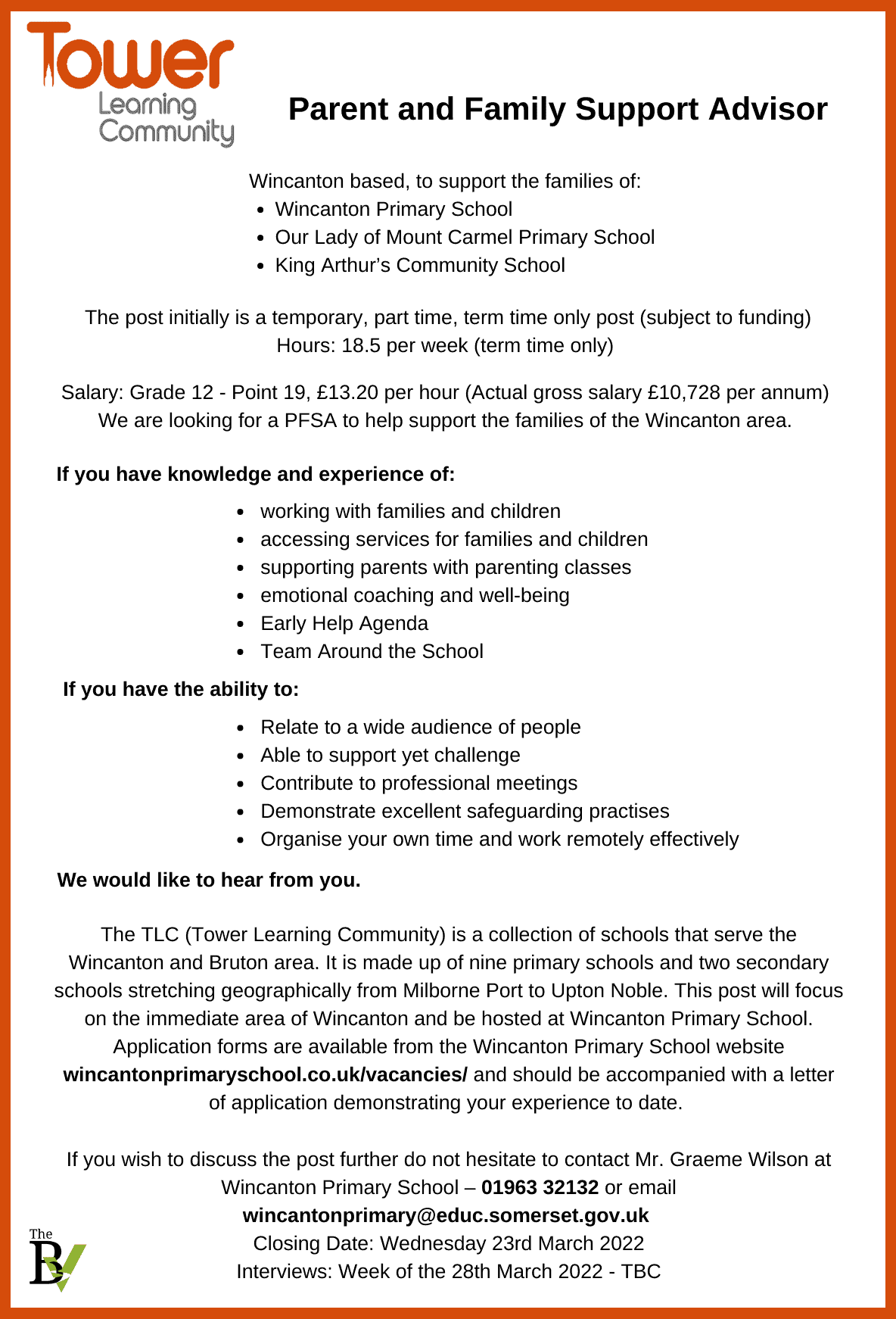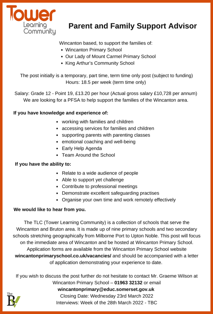 If you wish to discuss the post further do not hesitate to contact Mr. Graeme Wilson at Wincanton Primary School – 01963 32132 or email [email protected]