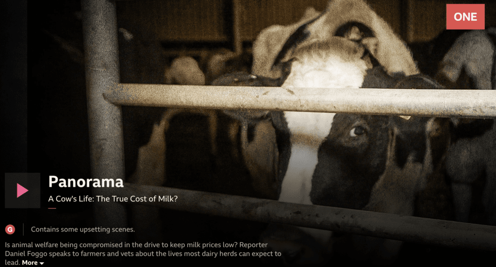 The farming community is strongly opinionated that the episode ‘A Cow’s Life: The true cost of milk’ (click the preview image below to view the programme on iPlayer) does not give a balanced view or fairly depict what farms are really like in the UK. Vegan animal rights activists, however, have stated that the programme has shone a light on the true living conditions of the cows that produce the milk that fills our shops and supermarkets. Both sides of the argument have only been able to agree on one thing – that the treatment of the cows and calves shown in the programme is barbaric.