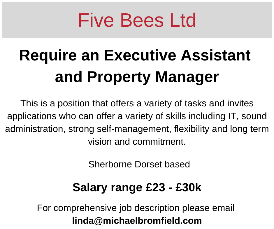 Five Bees require an executive assistant and property manager based near Sherborne in Dorset.