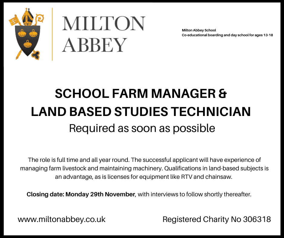 Milton Abbey School are urgently in need of a School Farm Manager and Land Based Studies Technician.