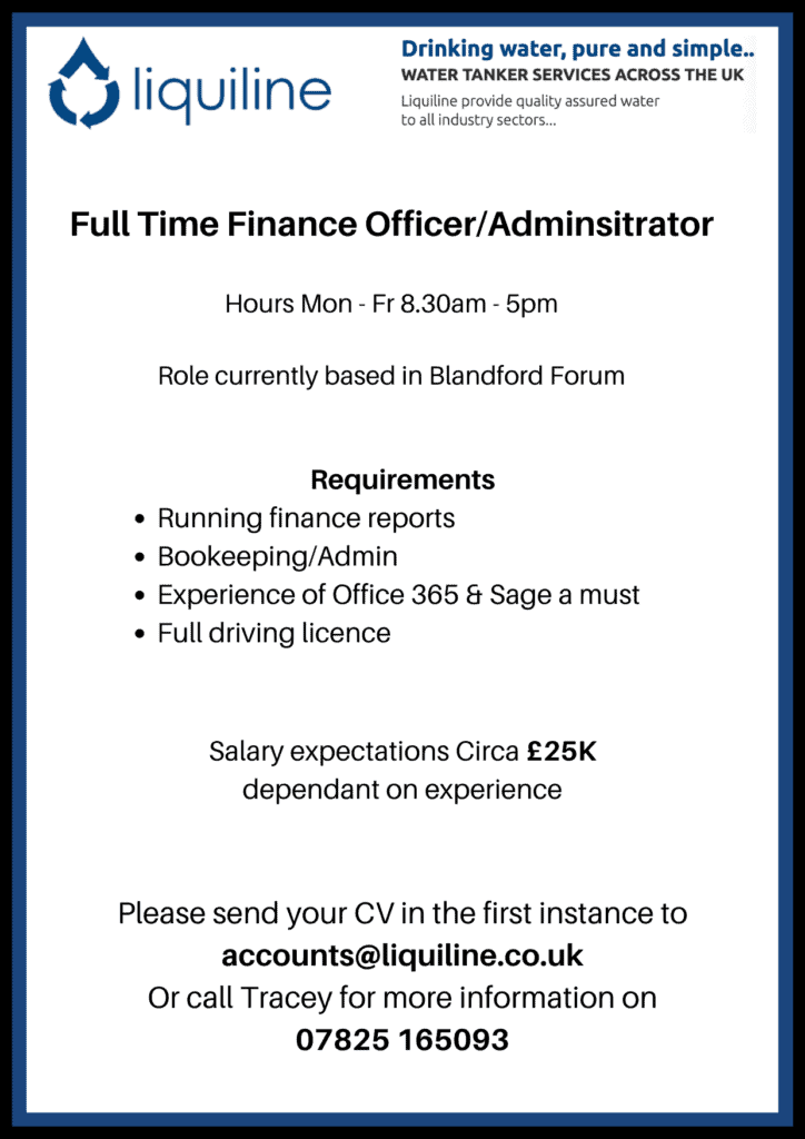 Liquiline are looking for a full time Finance Officer/Adminstrator to work from their Blandord Office.