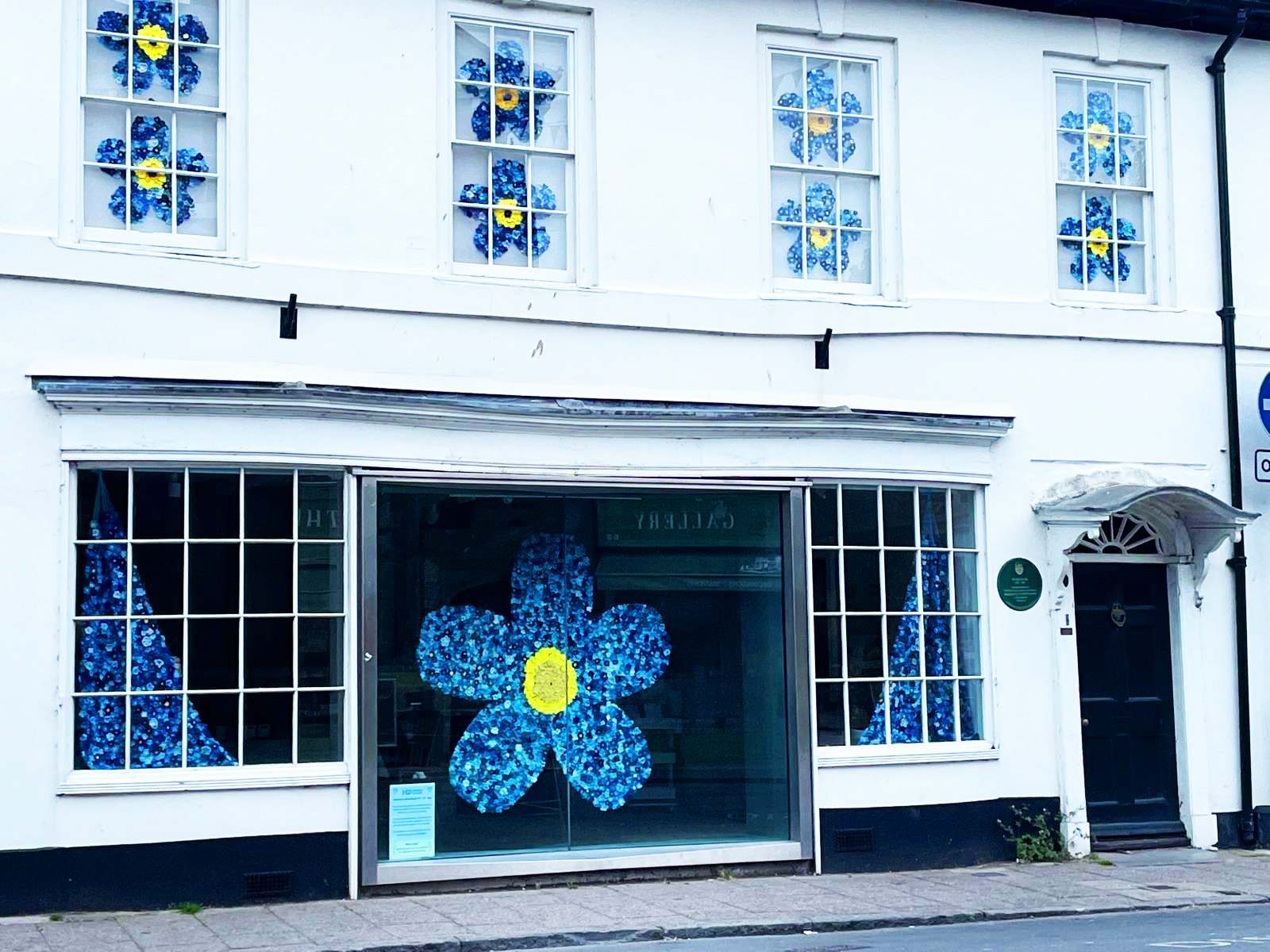 A spectacular sea of handmade forget-me-not flowers has bloomed across the Museum of East Dorset in Wimborne – image Tracie Beardsley
