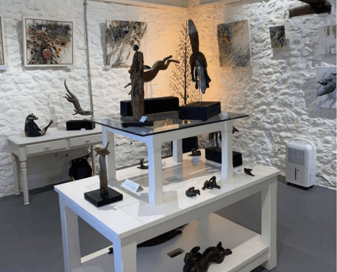 Nicky tells me she selects artists for the gallery and is about to choose more. There are paintings by Laurence Belbin and Caundle Marsh based artist Sam Dodd. Sam uses acrylics and has recently added gold leaf to give an extra dimension to her nature designs.