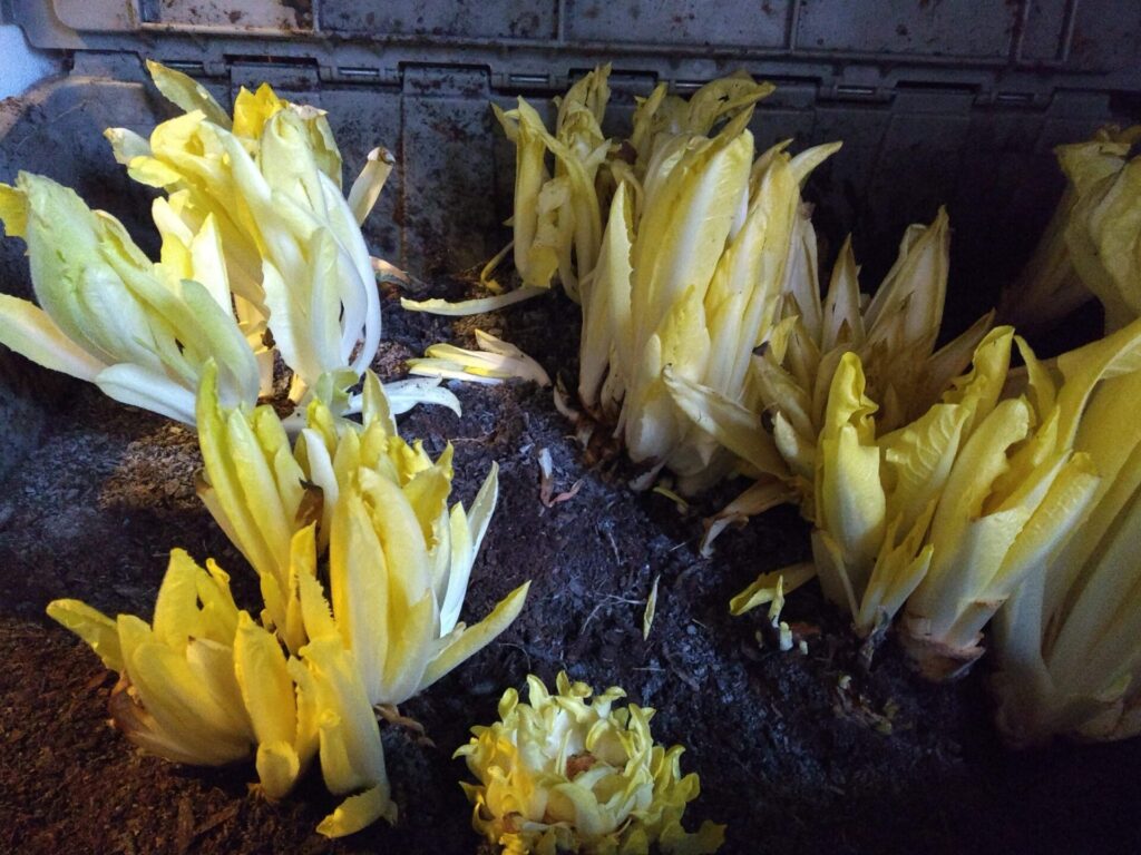 One of Barry’s only cropping vegetables is chicons of Witloof chicory – forced into rapid early growth for a tender, sweet crop.