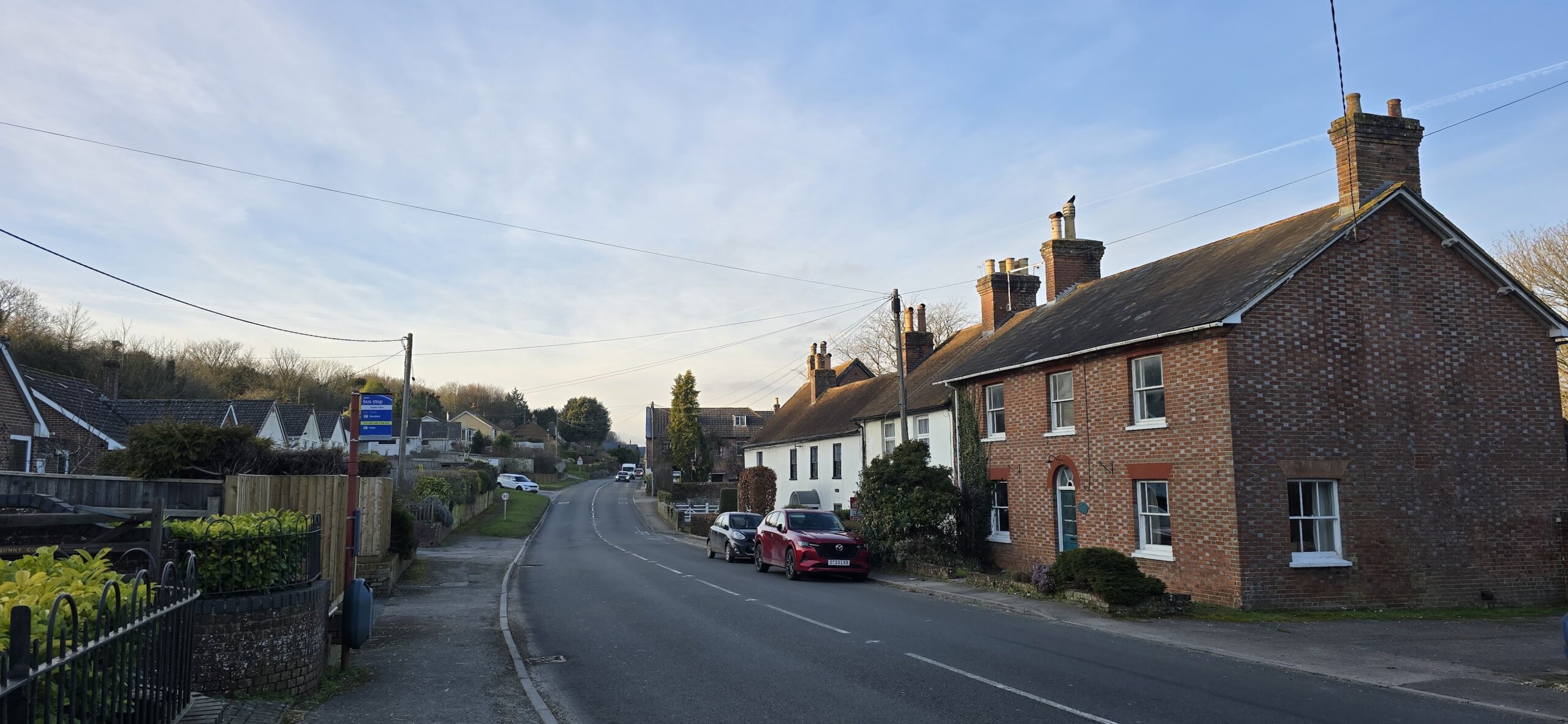 Both of the original postcards were posted in the 1940s. The Railway Inn on the right closed in 1986 – in its heyday it was a popular spot for local railway workers (the old railway line ran parallel to the road, behind and above the row of houses on the left of the image).