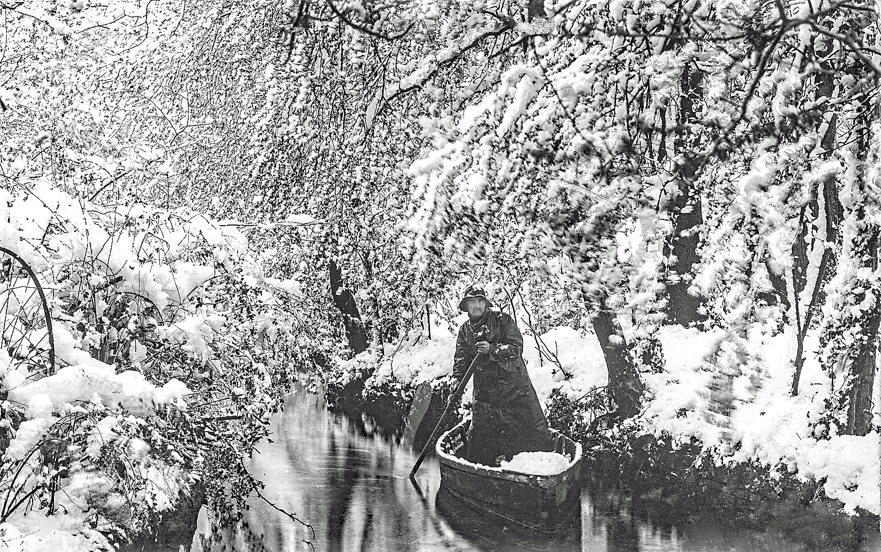 Job Pottle was born in 1856 in Poole to Henry and Fanny Pottle. He grew up in a busy household with three sisters and six brothers. One of his brothers was a part-time postman and photographic assistant: the snow scene above was produced as a Christmas card image from the Pottle family, and was possibly taken by his brother, as Job himself is the man in the boat.