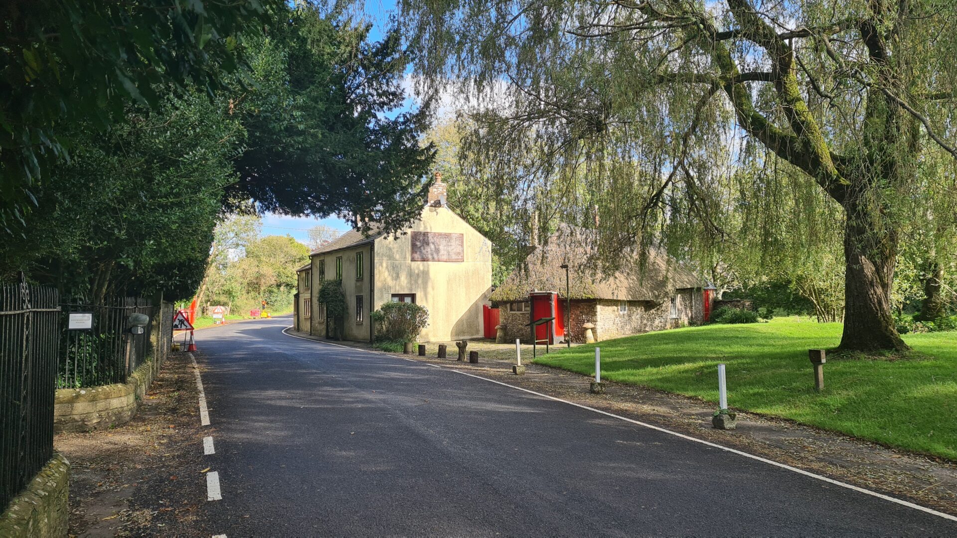 The Street is remarkably unchanged on the left, though the wall on the right has been replaced by garden hedges.Today’s large village green is not there in the old postcard. At that time, the river extended into a large pond