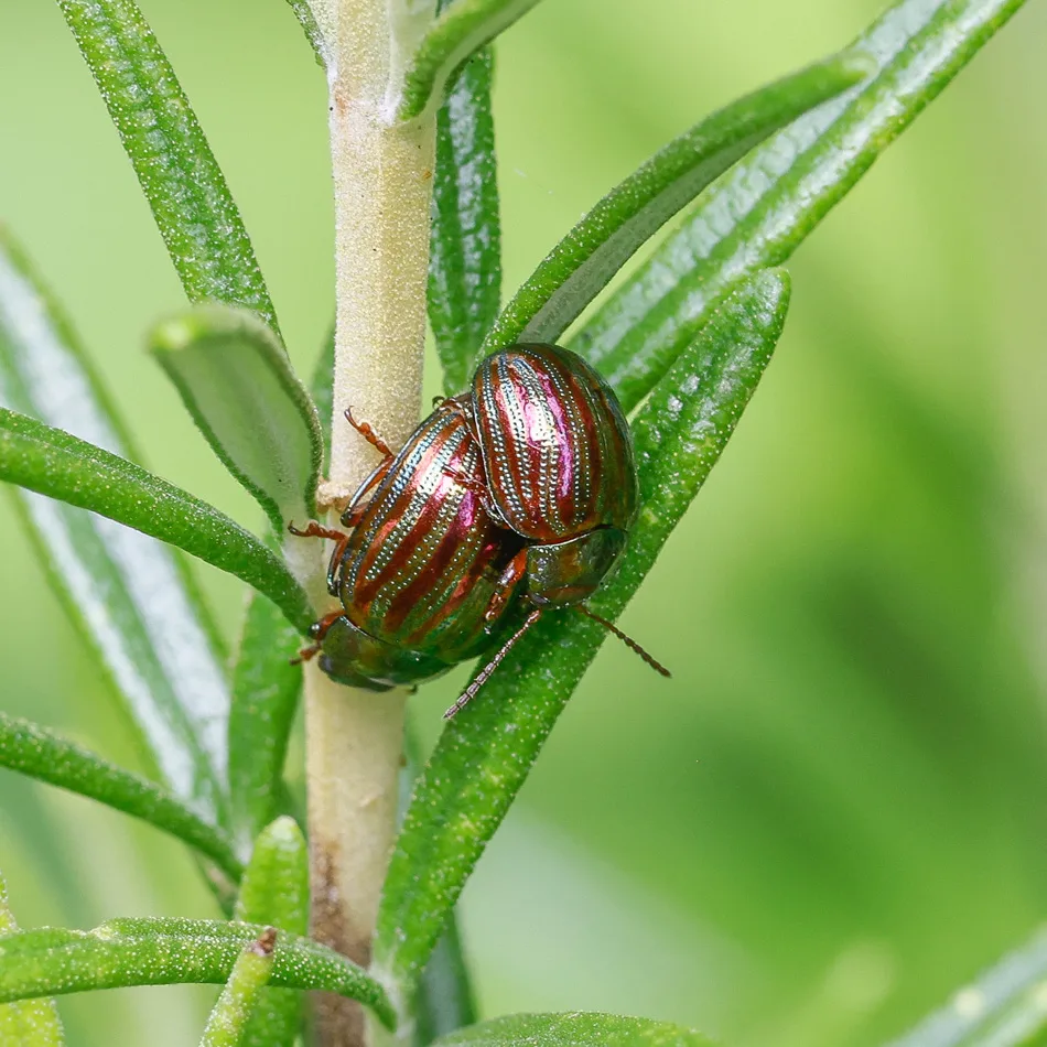 The cypress carpet moth has colonised much of Dorset in the past 30 years, as have several species of moth associated with holm oaks, including the sombre brocade which was first discovered at Durlston in 2008. Rosemary and lavender plants provide a home for another recent colonist, the colourful rosemary beetle, while the harlequin ladybird, which arrived in Britain 2004, is now one of our most common ladybirds.