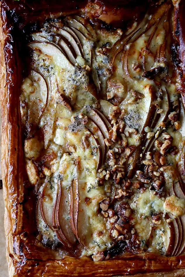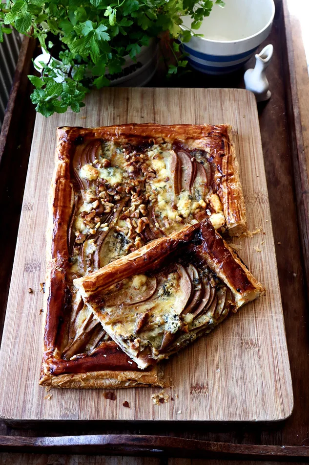 6. Bake the tart at 210ºC/ gas mark 7 for 15 to 20 minutes, until the pastry is puffed up and crisp and the cheese is bubbling.