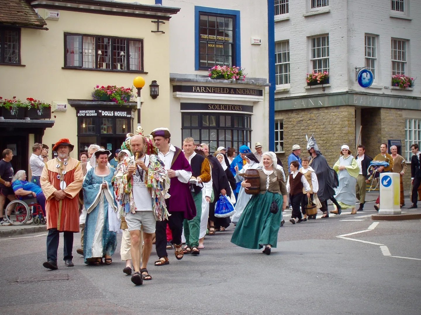 At 2pm on Sunday, Shaftesbury’s unique ancient tradition, the Byzant, begins at the Town Hall. The Byzant Ceremony, which dates back to 1364, takes its name from the ceremonial mace, which is usually on display in the town museum. Its significance relates to the precarious water supply which Shaftesbury suffered, with its hilltop position. The town had problems with a reliable water supply, until an agreement was reached with neighbouring Enmore Green, down the hill, to use their well water in return for some tribute including silver pennies, bread and ale. Traditionally, wildflower posies called Tussie Mussies are handed out for participants to carry on the walk down the ancient route to Enmore Green.