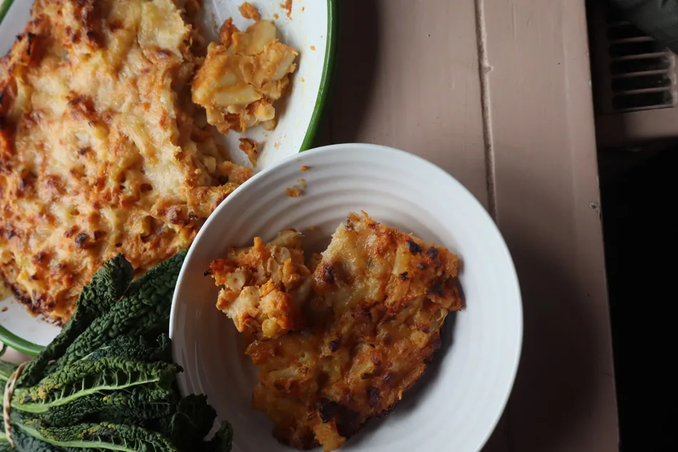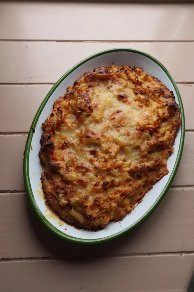 ‘This is a great way to add some veggies to your macaroni cheese. I also use a creamy garlic cheese with a hard cheese such as Cheddar. Look out for James’s Cheese: for this version I used the garlic cheese and Old Winchester.’ – Lizzi