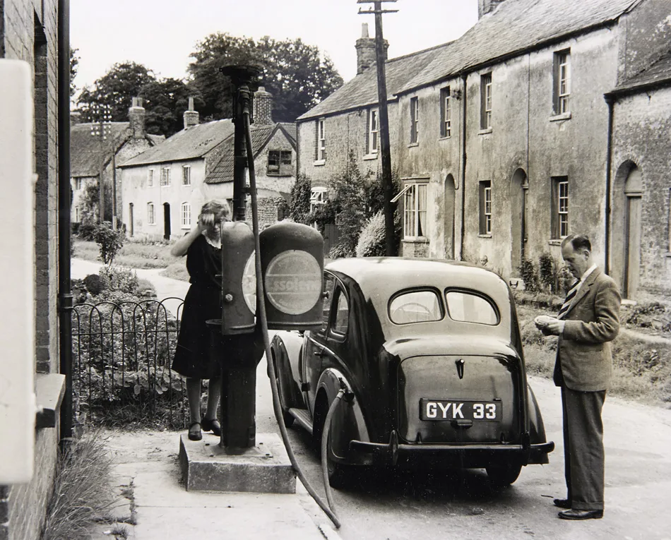 Mrs Spriggs also owns the local petrol pump. A constant stream of cars and commercial vehicles keeps her running in and out of the shop, creating an additional burden in her very busy day. The tank which holds 600 gallons is beneath the small garden behind Mrs Spriggs’.