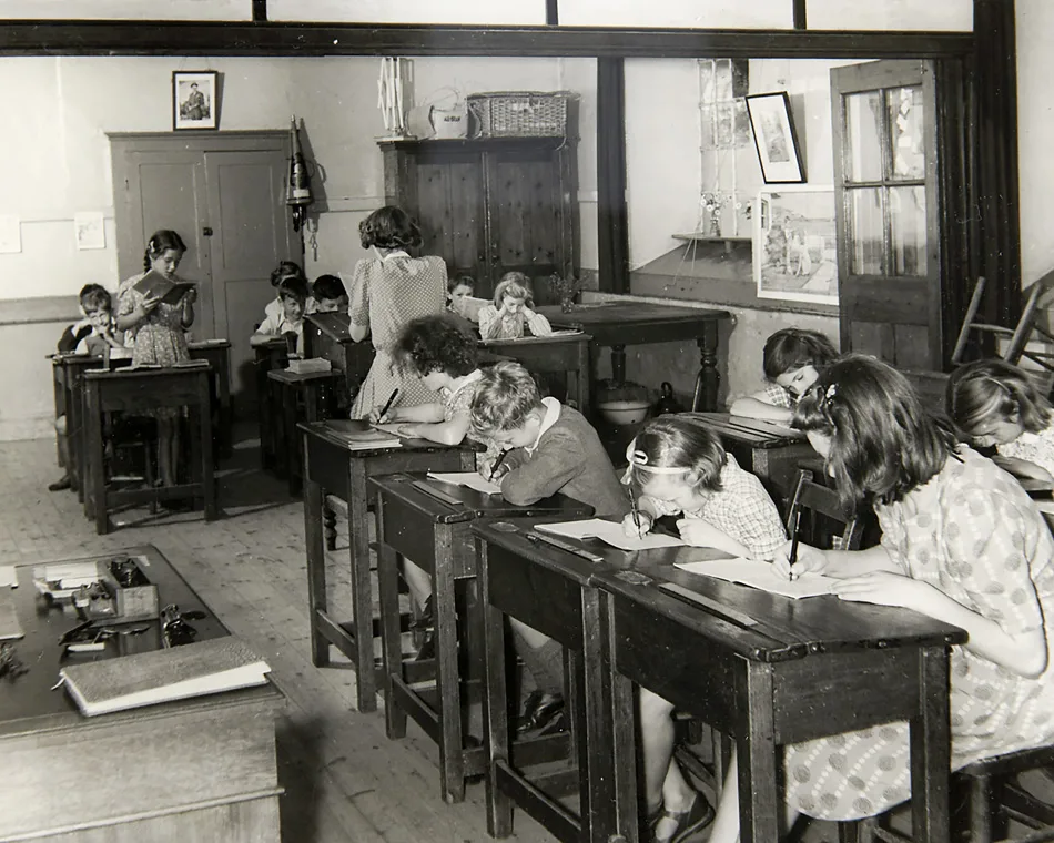 Here the junior class is in the background, and the senior class in the foreground. The latter will soon be moving on to either the Dorchester County School (for girls), Grammar School (for boys) or the Modern School (mixed).