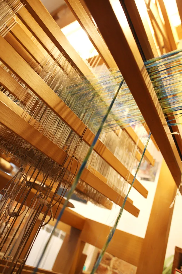 The loom is the type still used by Scottish Harris Tweed weavers today. ‘It’s very friendly to use,’ she says. ‘Everything works evenly and there’s very little that can wear out or break.’