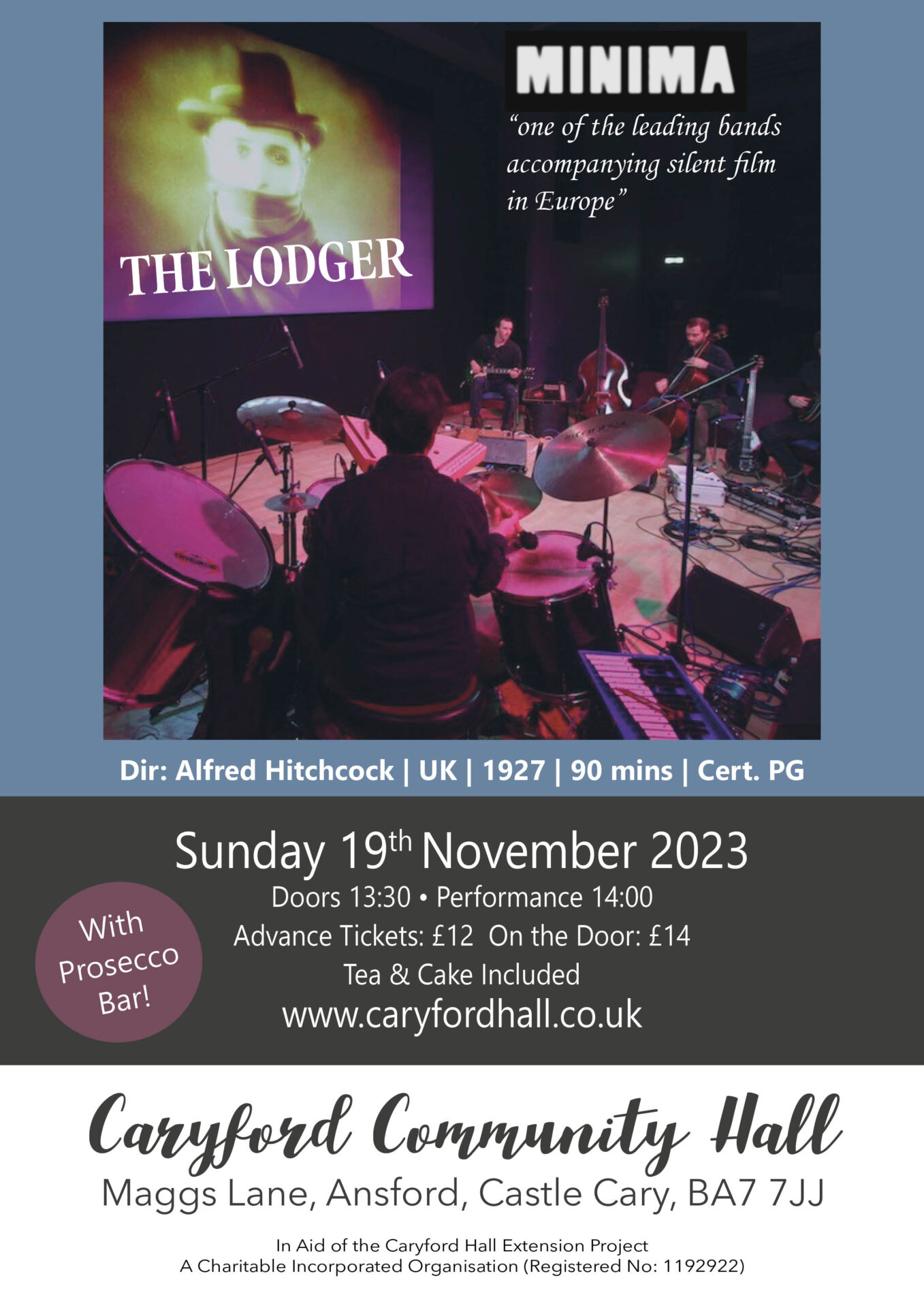 This silent film will be screened with live music accompaniment from Minima. Ticket price includes tea and cake. Prosecco bar will be open. Tickets via www.caryfordhall.co.uk