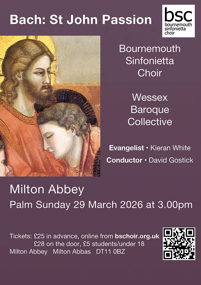 Bournemouth Sinfonietta Choir, together with the Wessex Baroque Collective, performs the wonderful St John Passion on Palm Sunday.