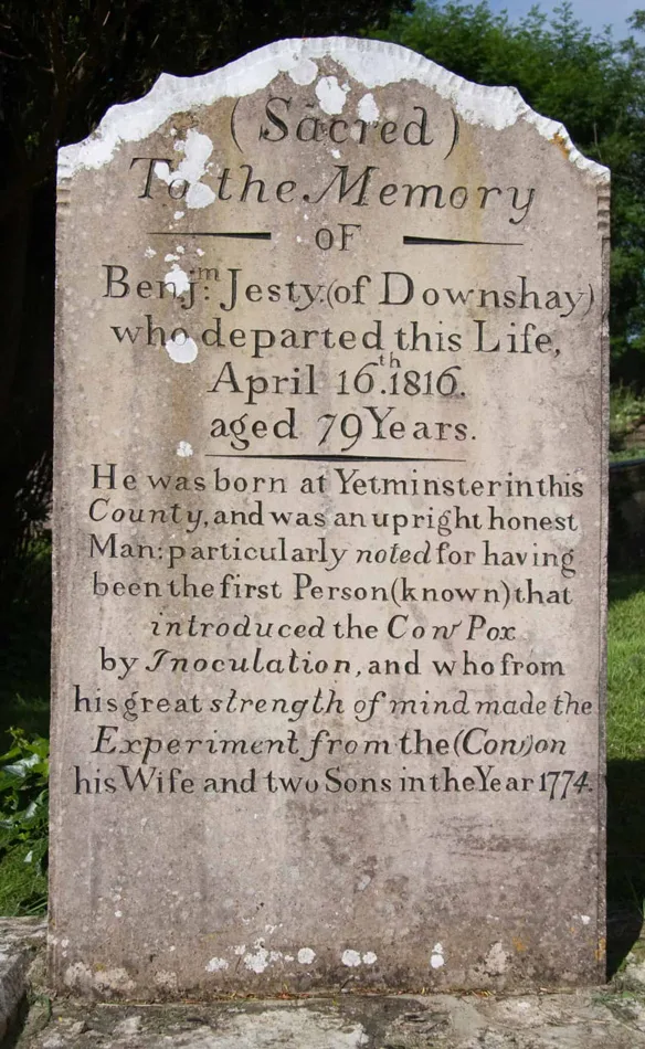 Benjamin Jesty died in 1816 aged 79. His gravestone at Worth Matravers describes him as the ‘first person (known) that introduced the cowpox by inoculation’. Elizabeth lived to 84. Their sons died in their sixties.